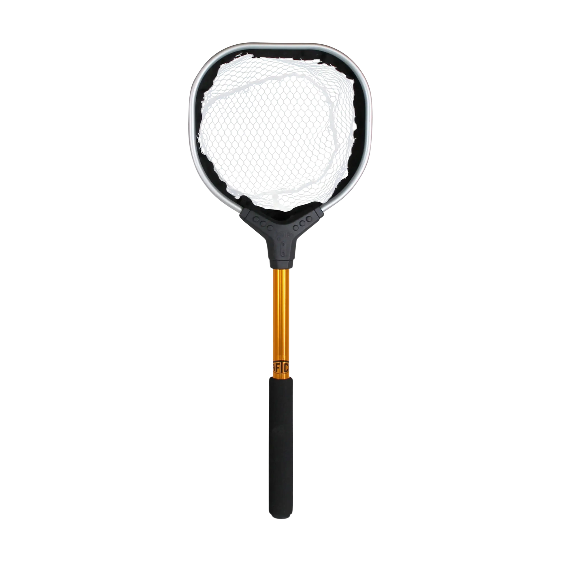 Each net features a strong aluminum hoop in either 8" or 10" sizes, ideal for reaching into the corners of bait wells. The signature gold anodized aluminum handles come in lengths of 12", 18", or 24", each fitted with a black vinyl grip for comfort and control. Durable enough for heavy use season after season, these nets deliver the reliability anglers expect from AFTCO.